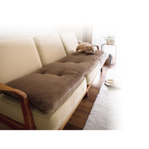 以前はカウチ部分と通常のソファ部分のカバーはそれぞれ別の布を掛けていたので統一感がなかったのですが、一枚ですむので見た目がとても綺麗です。 生地がポコポコしているので、肌触りが気持ち良く、寒い冬も暑い夏もオールシーズン気持ちよさそうです。 初めて付ける時は難しかったのですが、余分なところを100円ショップの滑り止めシートを棒状に丸めてソファの隙間につめたら全くズレる事もなく、快適です。 いいお値段がしますが、カウチ用ソファカバーは他に見た事がないので、良い買い物だったと思います。 あとは、耐久性があればいいのですが・・・。
