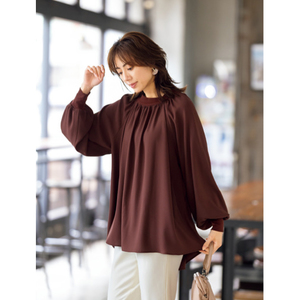 ギャザーと落ち感できれい見え。1枚で着映える冬ブラウス。