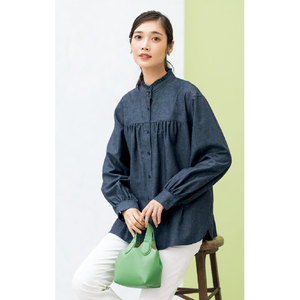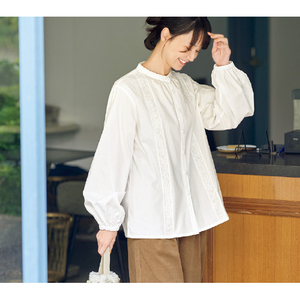 ニット重ねも決まる、バンドカラーのふんわりブラウス。