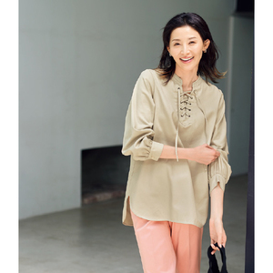 コットン バンドカラーブラウス