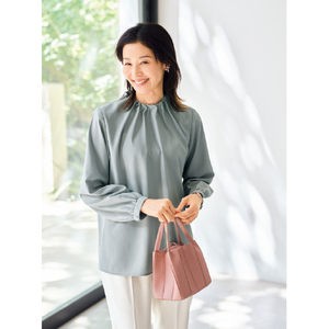 落ち感がきれいなギャザー ハイネックブラウス