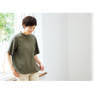 オーガニックコットン混 シャーリング使いのTブラウス