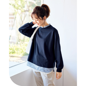 ブラウス+カットソーの重ね着風を1枚で。
