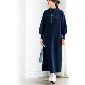 好みで選べるロング丈とショート丈。衿付きニットワンピース。