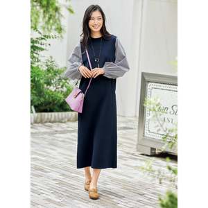 毛玉になりにくい マシュマロミラノリブ 袖布帛ワンピース