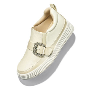 おとなかわいい 厚底パールレースコンビ スリッポンS4866