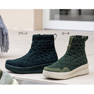 ゴムゴム 軽量キルティング ストレッチハイカットスニーカー