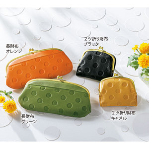 気持ちが春めく水玉模様。牛革のやわらかな手触りも魅力。