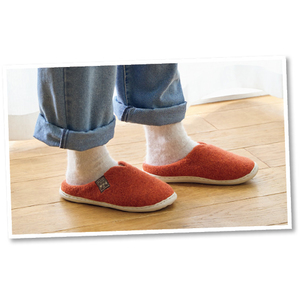 歩き心地がよく疲れにくい手編み製法の室内履き。