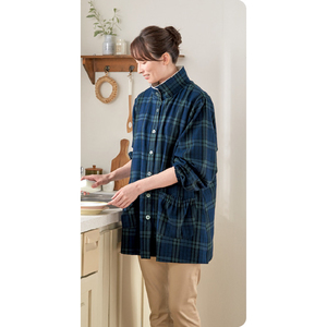 首元までカバーして暖かい、チュニック風のかっぽう着。