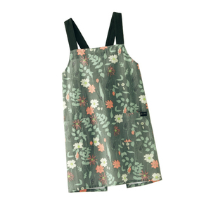 愛らしい花が舞う春色エプロン。着心地が調整できる前結びタイプ。