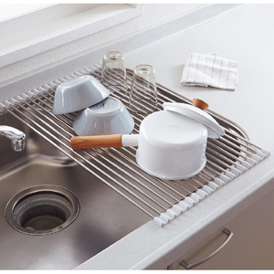 シンクに渡してスペース確保!美しいワイヤ構造で、大皿や鍋も置ける。