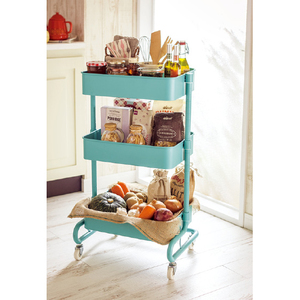 バスケットの高さを簡単に調節できる収納ワゴン。サニタリーや子ども部屋など、いろいろな場所で活躍。