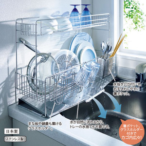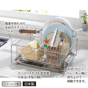 ●材質/水切りバスケット・斜めトレー=ステンレス鋼、脚ゴム・クッションチューブ=シリコンゴム・・・