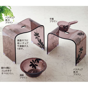 ●材質/バスチェア=メタクリル樹脂、ゴム部分/塩化ビニル樹脂、手桶・湯桶=メタクリル樹脂・・・