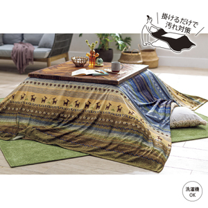 こたつふとんの上に掛けるだけ。汚れをカバーして丸洗いOK!