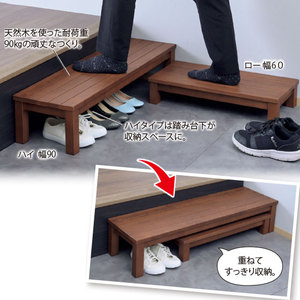ラバーウッド材×スチール脚の丈夫な玄関踏み台。和洋どちらの玄関にも合うデザイン。