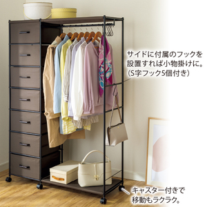 キャスター付き 引き出しいっぱいハンガーラック