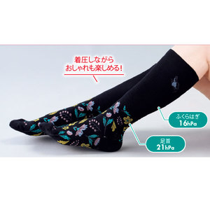 長時間の移動も快適に。おしゃれな花柄の着圧ソックス。