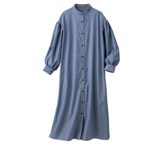 アイロンいらずの バンドカラーワンピース