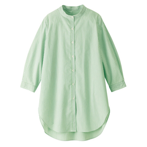 アイロンいらずの バンドカラーロングシャツ