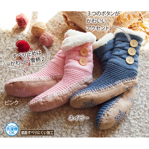 ブーツタイプの 裏ボアあったか ルームソックス(雪柄)