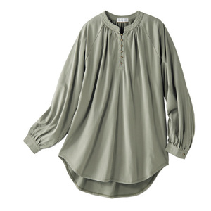 ブラッシュコットンリネンの はおりにもなる へちま衿チュニック