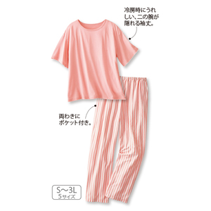 綿100%スラブ天竺の ルームウエアセット