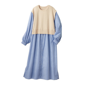 ニットベスト布帛使い ドッキングワンピース