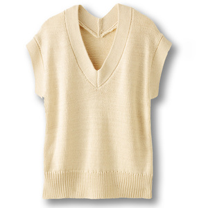 綿混のざっくり編みで、二の腕もほんのり隠すシルエット。