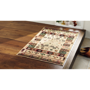 ノスタルジックなギャベ柄を鮮やかに表現。短い毛足とはっ水仕様でお掃除もラク。
