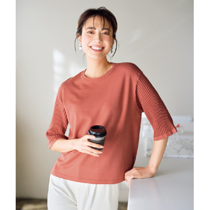 ●素材/レーヨン65%・ポリエステル35%(ニット、身頃=天竺、袖=透かし柄)