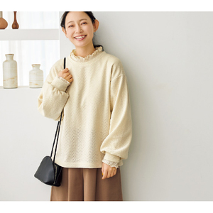 ●素材/ポリエステル66%・綿34%(織物、平織、裏起毛加工)、レース部分=綿100%・・・