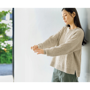 ケーブル柄×透かし編みが新鮮。ウール混のふっくらニット。