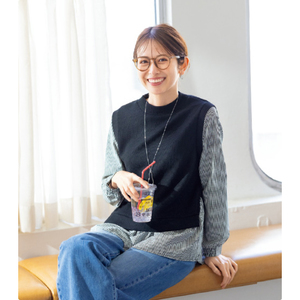 フリンジ柄で華やぐ、旬感ベストでこなれ映え。