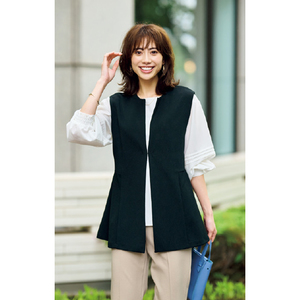 ペプラム効果で腰高に体形カバー。ハレの日にも映えるきれいジレ。