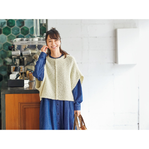 重ね着が新鮮見えする、ポンチョ型ベスト。