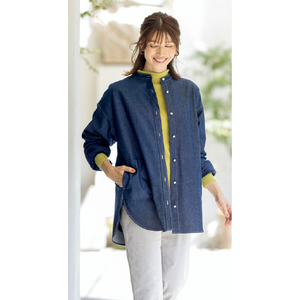 こっそり裏フリースデニム調 オーガニックコットン混シャツ