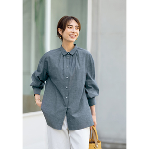 二の腕も体の線も上手にカバー。ゆるっときれい映えブラウス。