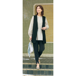 お手持ち服にはおるだけで決まる。すっきり仕立てのジレ。
