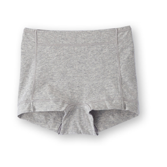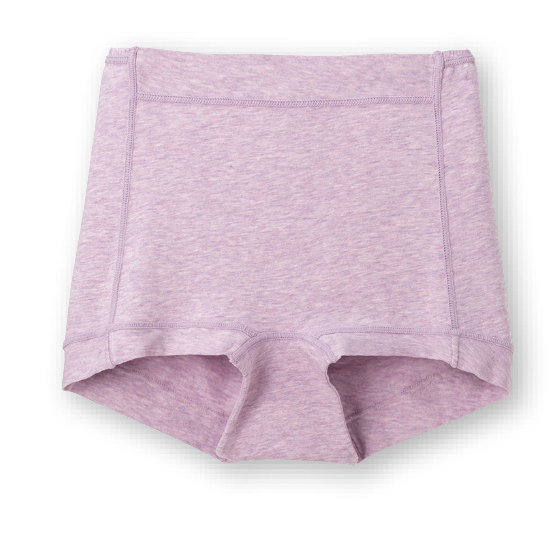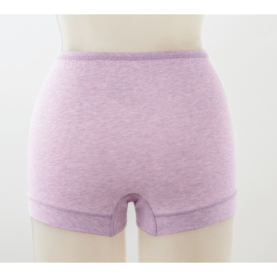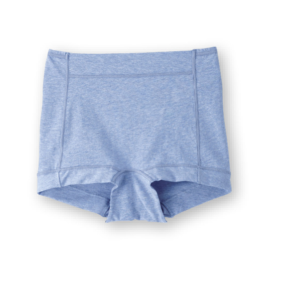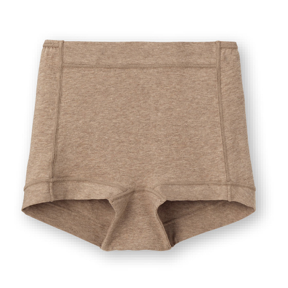 ウエスト前部と脚口はゴムを使わず、身生地を折り返したラクな仕様。薄手でしなやかな綿混生地を使い、ウエスト後ろゴムも生地でくるみました。レースを使わず、縫いしろはすべて外側で平らに倒し、肌側がなめらか。