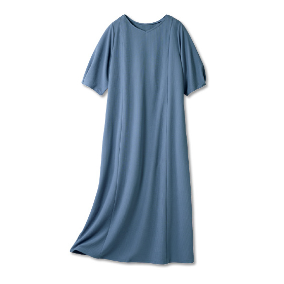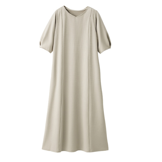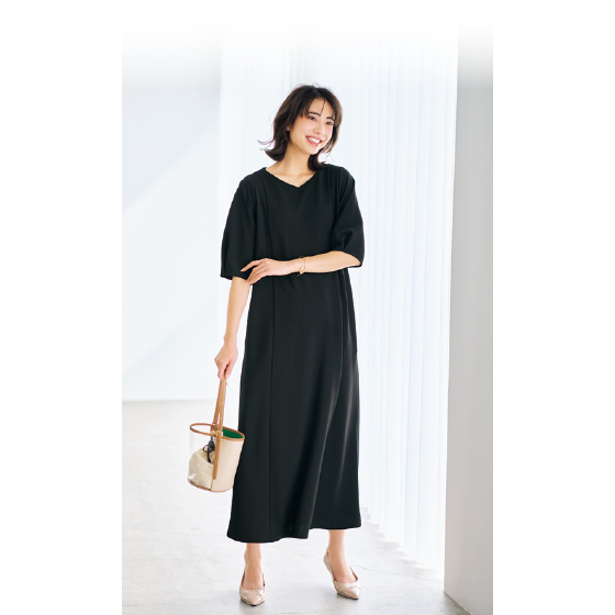 サラリと肌離れして体の線を拾いにくい素材。流れるようなドレープで上品なシルエット。360度伸びて着心地がよく、シワや毛玉、シルエット崩れも抑えるから外出先でもリラクシー。洗濯機で洗えて乾きが速く、乾燥機も使えるほどタフ素材。お手入れに手間なしでヘビロテ。