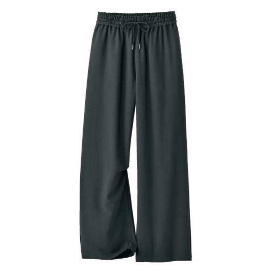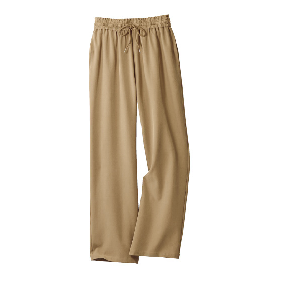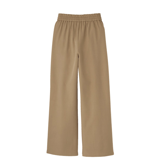 やわらかな素材と、裾に向けて広がりすぎずにすとんと落ちるシルエットで、大人もはきやすいワイド。ウエストは総ゴムでラクなはき心地。※春夏秋におすすめです。