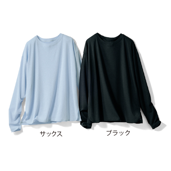 ほんのりスラブをプラスすることで、大人も着やすいシアー感に。シャリッとした肌触りが心地よく、ラウンド裾で腰回りもすっきりカバー。