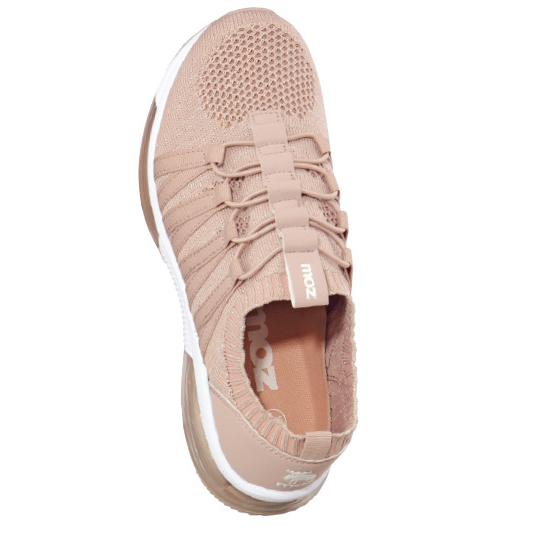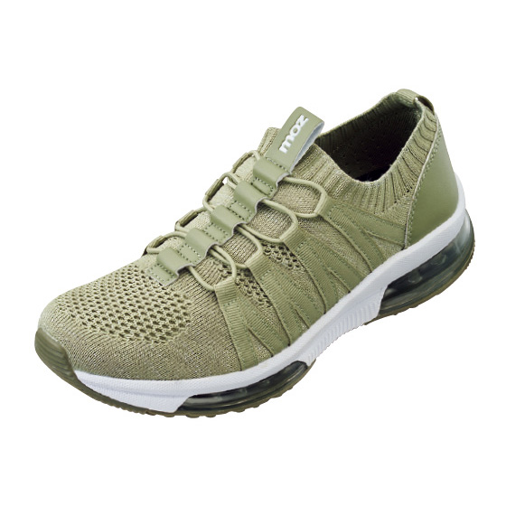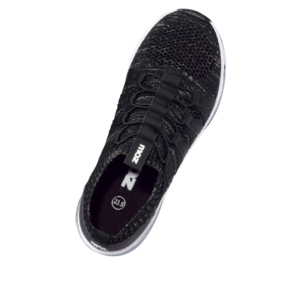 まるで靴下のような軽い履き心地のニット素材。高反発素材のインソールで快適。結ばず履けるバンジーコードを使用したスリッポンタイプ。