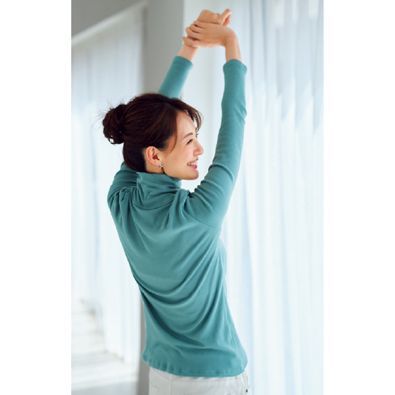 肌触りがとてもよいです。首回りのストレスがありません。柔らかくて暖かいです。伸縮性もあり着心地もよいです。