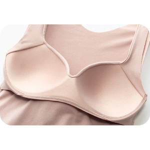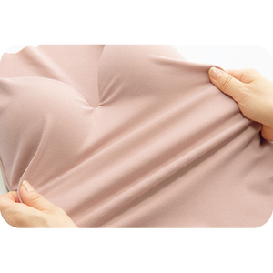 アンダーゴムなしの左右一体型カップが、サイドに流れがちなバストを整え、立体的な美胸に。肌当たりやさしいオーガニックコットン混の生地で快適フィット。
