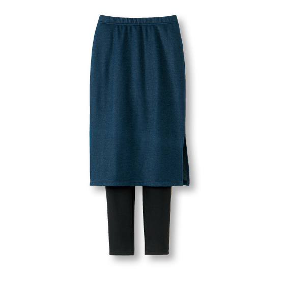 毛足が長くなめらかな裏起毛仕立てのスカートとスパッツを一体化。伸びやかニットではき心地ラクちん。ロングスカートで今どき見えも。※春秋冬におすすめです。