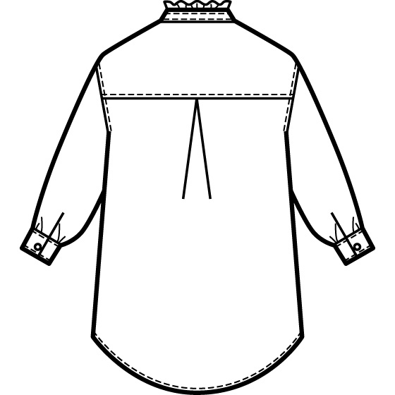 デニムの産地、岡山県「KUROKI」の軽くソフトな生地に、胸元の切替やフリル衿、パール調ボタンをあしらい、ほんのりエレガントに。季節の変わり目のはおりものとしても重宝。