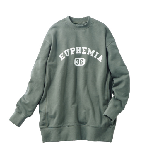 旬カジュアルが決まるカレッジ風ロゴ入りトレーナーを、コットンリネンの裏毛素材でつくりました。